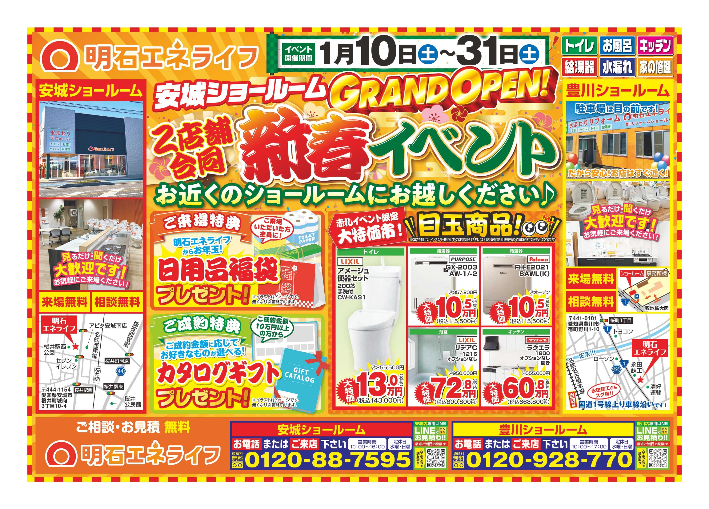1月10日からの新聞折込チラシには、今回のイベント限定の目玉商品や特別パックの情報を多数掲載しております。ぜひ、チラシをご持参のうえご来場ください!